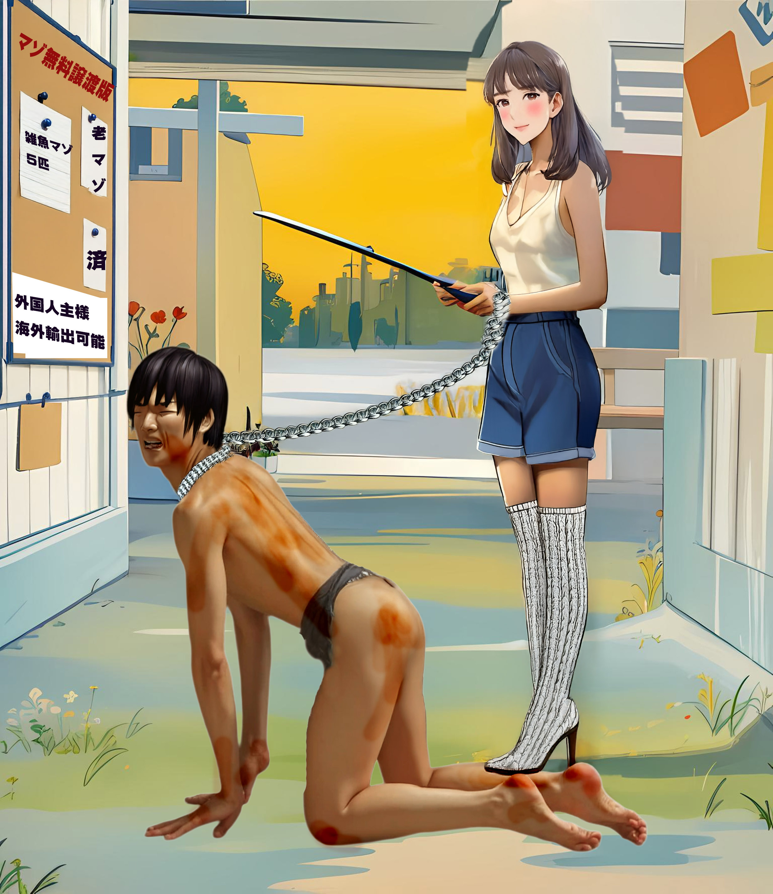 マゾ非人間化宣言は全世界で採択され、マゾは人権を失い女性に従属する所有物としてのみ生きる事が許されている。